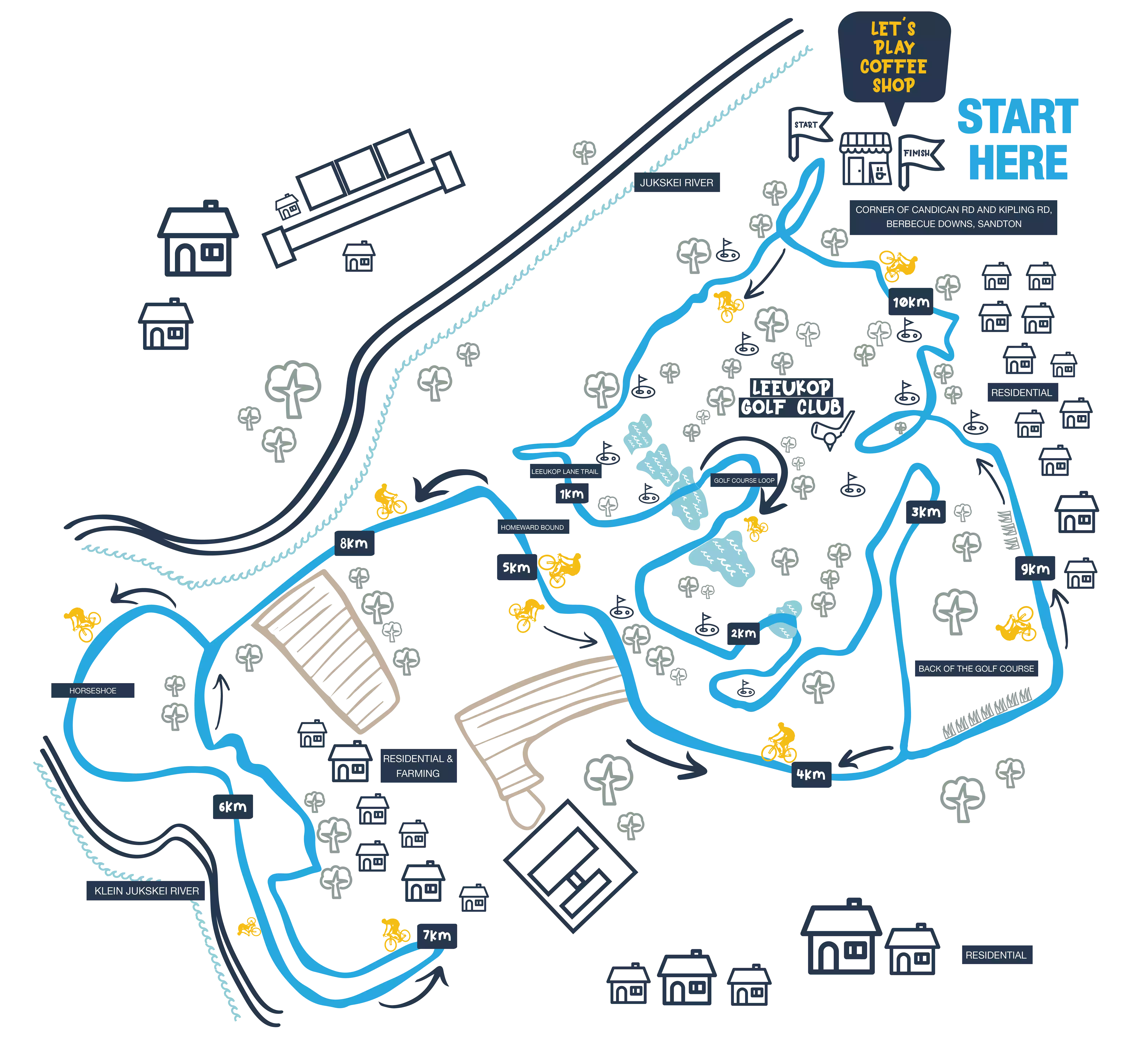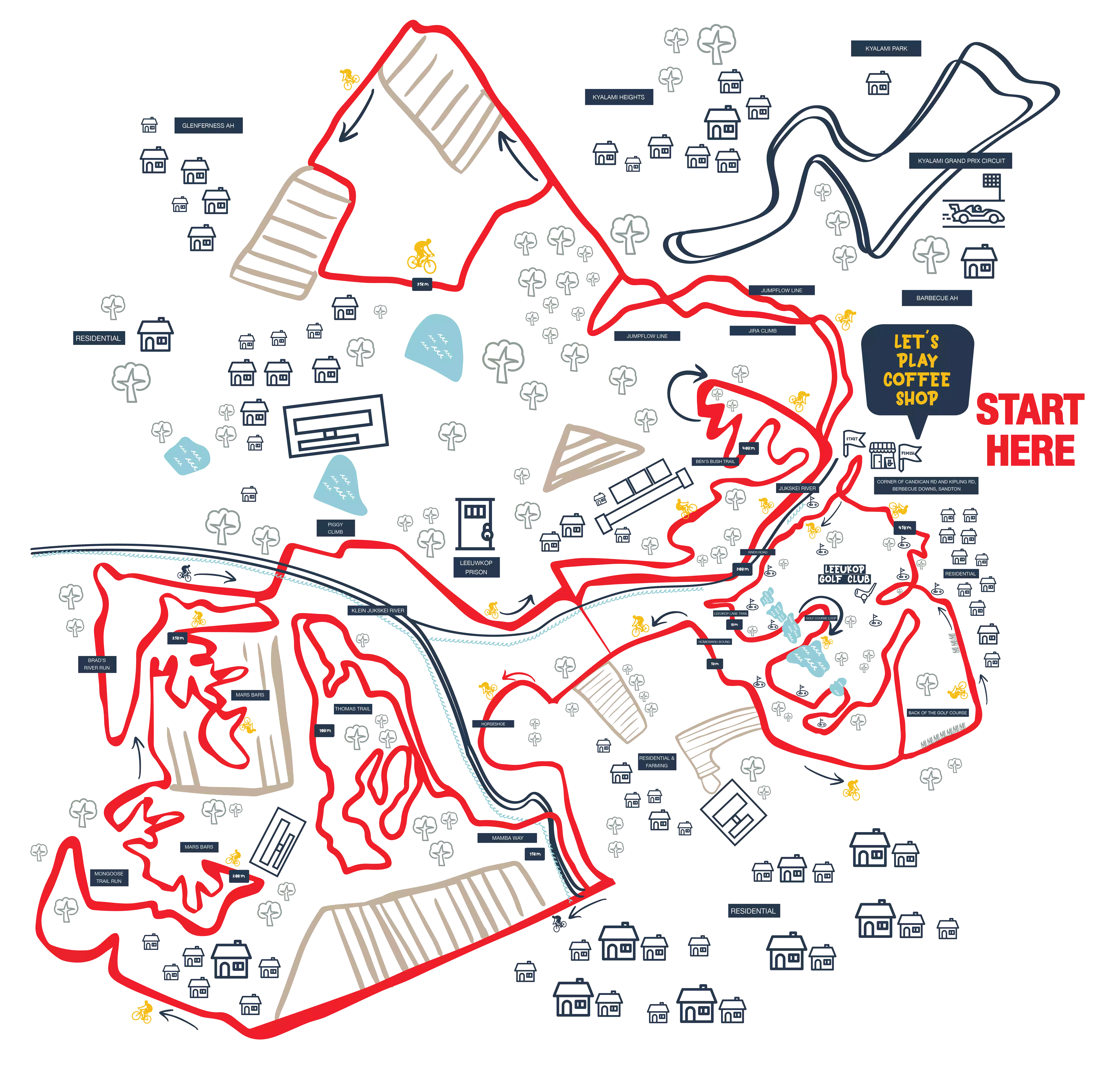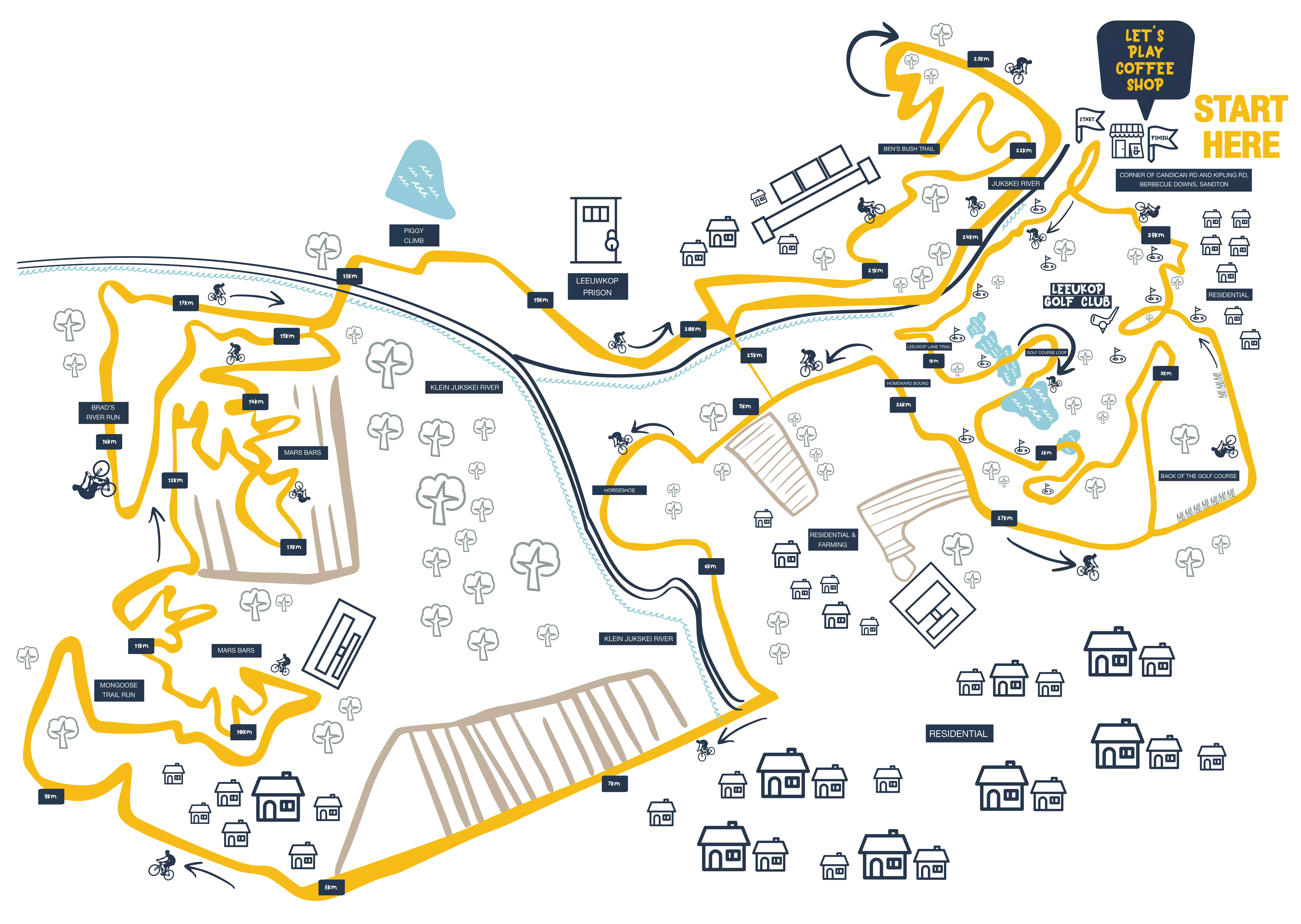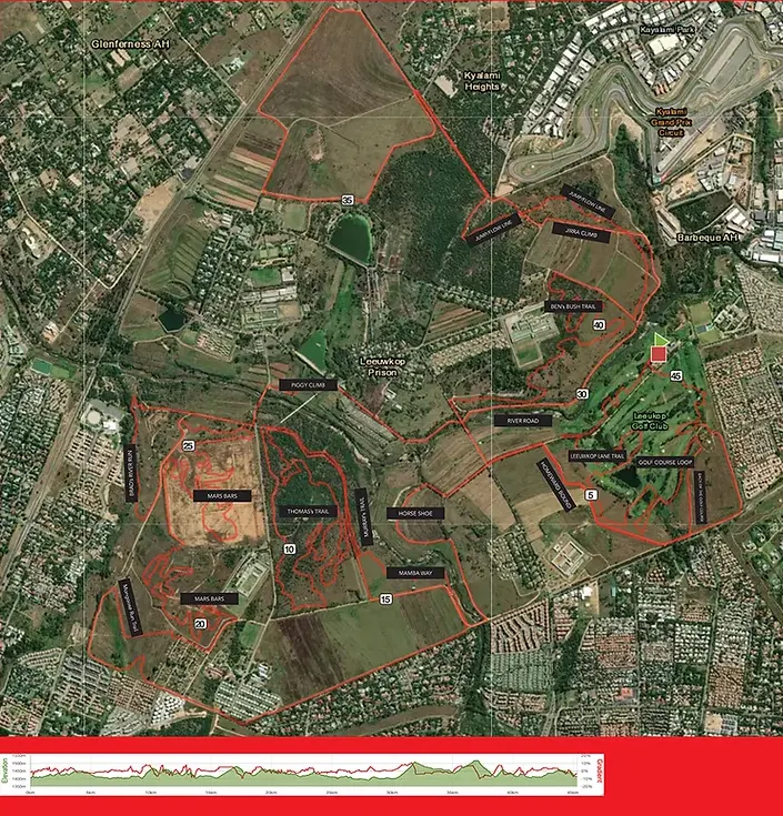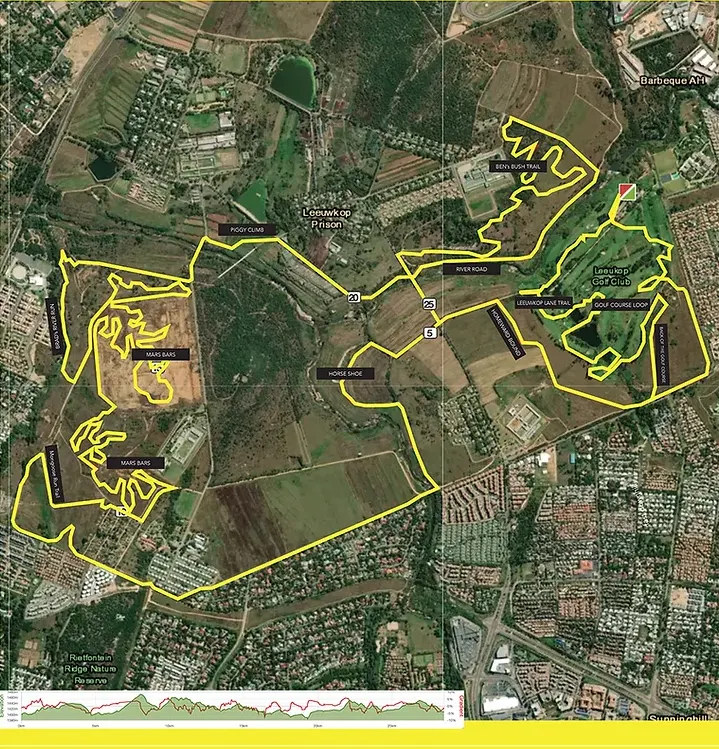 On the 45km route. Best suited for the hardcore MTB who wants to up his game. 3,8km of single track. Off camber sections with bush tunnels. Excellent bird life. Flowing sections.